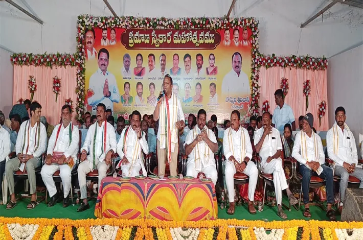 దోమకొండ గ్రామ అభివృద్ధికి అన్ని రకాలుగా నిధులు మంజూరుకు ప్రభుత్వ సలహాదారు షబ్బీర్ అలీ సహకారంతో ముఖ్యమంత్రి రేవంత్ రెడ్డి తో మాట్లాడి పనుల మంజూరుకు కృషి చేస్తామన్నారు. సన్మాన కార్యక్రమంలో జిల్లా గ్రంధాలయ సంస్థల చైర్మన్ మద్ది చంద్రకాంత్ రెడ్డి ,జిల్లా యువజన నాయకులు ఇలియాస్, బీసీసీ కార్యదర్శి బద్దం ఇంద్ర కరణ్ రెడ్డి ,మాజీ జెడ్పిటిసి తీగల తిరుమల గౌడ్ ఆయా మండలాల కాంగ్రెస్ నాయకులు దోమకొండ సర్పంచ్ ఐరన్ నరసయ్య ,ఉపసర్పంచ్ బొమ్మెర శ్రీనివాస్, వార్డు సభ్యులు చేత మండల ఎంపీడీవో ప్రవీణ్ కుమార్ పదవీ ప్రమాణ శ్రీకారం చేయించారు. ఈ కార్యక్రమంలో ఆయా కుల సంఘాల ప్రతినిధులు నాయకులు కార్యకర్తలు తదితరులు పాల్గొన్నారు