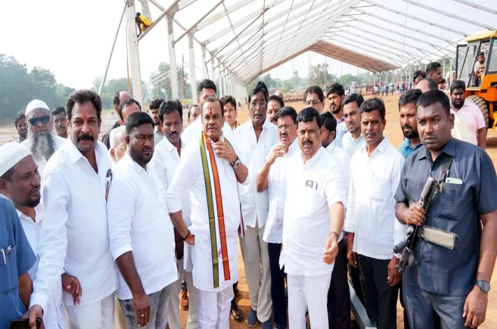 దేవరకొండ, డిసెంబర్ 4: ఈ నెల 6న నల్లగొండ జిల్లా దేవరకొండలో ప్రజా పాలన ప్రజా విజయోత్సవ సభ నిర్వహణలో భాగంగా ముఖ్యమంత్రి రేవంత్రెడ్డి చేతుల మీదుగా పలు అభివృద్ధి పనుల శంకుస్థాపన జరగనుందని రాష్ట్ర రోడ్లు భవనాలు, సినిమాటోగ్రఫీ శాఖ మంత్రి కోమటి రెడ్డి వెంకట్రెడ్డి వెల్లడించారు. గురువారం ఆయన నల్లగొండ జిల్లా దేవరకొండలో స్థానిక ఎమ్మెల్యే బాలు నాయక్తో కలిసి బహిరంగ సభ ప్రాంగణాన్ని పరిశీలించారు.