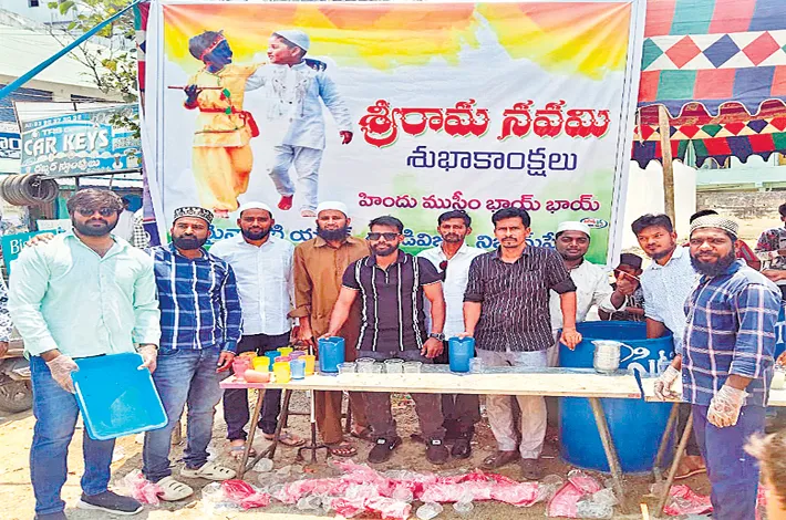 ఖమ్మం, ఏప్రిల్ 6 ( విజయక్రాంతి ):-ఖమ్మం జిల్లా వ్యాప్తంగా శ్రీరామ నవమి సందర్బంగా సీతారాముల కళ్యాణ మహోత్సవ వేడుకలు అంగరంగ వైభవం గా జరిగా యి.అన్ని దేవాలయాల్లో రా ములోరి కళ్యాణాన్ని కన్నుల పండువుగా నిర్వహించారు. అశేషంగా తరలివచ్చిన భక్త జన సందోహం రామ నామ స్మరణ మధ్య జాగదభిరాముడు జానకమ్మల కళ్యాణం వేద మంత్రోత్సరణల తో అత్యంత ఘనంగా జరిగింది.భక్తులు నేత్రానందంగా స్వామి వారి కళ్యాణాన్ని తిలకించి పులకించిపోయారు. ఈ సందర్బంగా భక్తులకు ఎటువంటి ఇబ్బంది లేకుండా మంచినీళ్లు, మజ్జిగ సరఫరా చేశారు. ఖమ్మం లో ముస్లిం సోదరులు కుల మతాలకతీతంగా ముందుకు వచ్చి భక్తులకు చల్లని నీరు, మజ్జిగ పంపిణీ చేసి, ముస్లిం హిందూ భాయి భాయి అని చాటారు. ఖమ్మం లోని 42వ డివిజన్ నిజాంపేట మైనార్టీ యూత్ ఆధ్వర్యంలో ఈ కార్యక్రమం నిర్వహించారు.