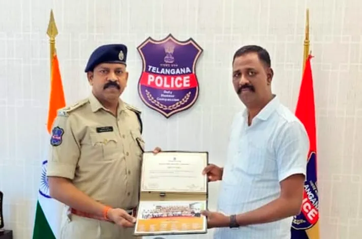 వనపర్తి క్రైమ్, నవంబర్ 13 : వనపర్తి జిల్లా ఎస్పీ పి ఆర్ వో రాజా గౌడ్ హైదరాబాదులోని పేట్లబుర్జ్ సిటీ పోలీసు ట్రైనింగ్ సెంటర్ లోమూడు రోజులపాటు జరిగిన పీఆర్వోల శిక్షణ శిబిరంలో డీజీపీ శివదర్ రెడ్డి చేతుల మీదుగా ప్రశంస పత్రం ను అందుకున్నారు.