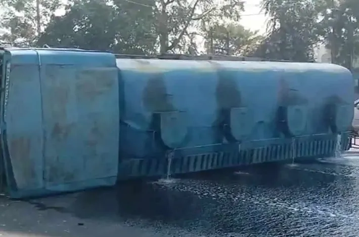 ట్యాంకర్ బోల్తా.. రోడ్డు పాలైన వేలాది లీటర్ల డీజిల్