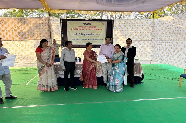 పాల్వంచ,(విజయక్రాంతి): నవ భారత్ ఎనర్జీ ఇండియా లిమిటెడ్ పాల్వంచ వారు సామాజిక బాధ్యత కార్యక్రమాలలో భాగంగా ప్రభుత్య పాఠశాల విద్యార్థిని, విద్యార్థుల సౌకర్యర్థం డెస్క్ బల్లలను మంగళవారం అందజేశారు. ఈ కార్యక్రమానికి డిస్ట్రిక్ట్ ఎడ్యుకేషనల్ ఆఫీసర్ & జడ్పీ సీఈఓ, భద్రాద్రి కొత్తగూడెం బి.నాగాలక్ష్మి ముఖ్య అతిధిగా విచ్చేశారు. ఈ సందర్భంగా ఆమె మాట్లాడుతూ... వివిధ ప్రభుత్య పాఠశాలకు నవ అధించిన సహకారల గురించి ప్రస్థావిస్తూ, కొన్ని ప్రభుత్వ పాఠశాలలకు సైన్స్ ప్రయోగ శాలలు, ప్రయోగ పరికరాలు అందించారు.