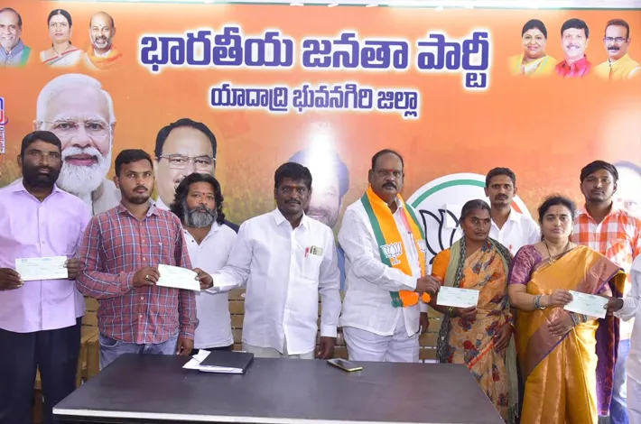 యాదాద్రి భువనగిరి (విజయక్రాంతి): బిజెపి యాదాద్రి జిల్లా కార్యాలయంలో శనివారం భారతీయ జనతా పార్టీ తెలంగాణ రాష్ట్ర అధ్యక్షులు కేంద్ర మంత్రి జి. కిషన్ రెడ్డి చొరవతో తెలంగాణ స్టేట్ ఫైనాన్షియల్ అసిస్టెన్స్ నుండి యాదాద్రి భువనగిరి జిల్లాకు చెందిన మహమ్మద్ జావేద్ ఆలేరు పట్టణ రామ్ శివాజీ నగర్ నివాసి, మోత్కూర్ మండల్ రాగి బావి గ్రామస్తులు కేవినోద, దోతి గూడెం పోచంపల్లి మండల్ గ్రామస్తులు నాగరాజు, లింగారెడ్డిగూడెం చౌటుప్పల్ మల్లారెడ్డికి వైద్య సహాయం కోసం యాదాద్రి భువనగిరి జిల్లా అధ్యక్షులు పాశం భాస్కర్ చెక్కులు అందించారు. ఈ కార్యక్రమంలో జిల్లా ప్రధాన కార్యదర్శి చంద మహేందర్ గుప్త, జిల్లా కార్యదర్శి వైజయంతి, జిల్లా అధికార ప్రతినిధి ఆకుతోట రామకృష్ణ మోత్కూర్ మండలం బిజెపి ప్రధాన కార్యదర్శి రాధారపు మల్లేశం, పిన్నింటి నరేందర్ రెడ్డి పాల్గొన్నారు