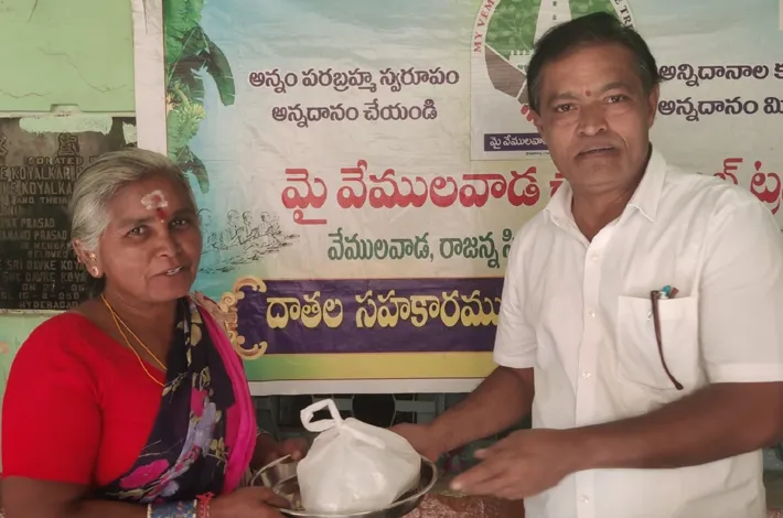 వేములవాడ (విజయక్రాంతి): మై వేములవాడ చారిటబుల్ ట్రస్ట్ నిర్వహిస్తున్న నిరంతర అన్నదాన సేవ 1691వ రోజుకు చేరింది. ఈ సందర్భంలో సోమవారం ఆలయాల వద్ద పేదలకు భోజనం వడ్డించారు. పేపర్ ప్లేట్ల వాడకం ఆరోగ్యానికి మంచిది కాదని భావించిన ఒక గుప్తదాత ప్రతిరోజూ వినియోగానికి స్టీల్ ప్లేట్లు అందించడం ప్రత్యేక ఆకర్షణగా నిలిచింది. సోమవారం అన్నదాతలు పుట్టినరోజు, పెళ్లిరోజు సందర్భంగా నిమ్మశెట్టి విజయ్–శారద, కమ్మగాని సుధాకర్–మమత, కట్ట రమేష్–విజయ దంపతులు అన్నదానంలో పాల్గొన్నారు.