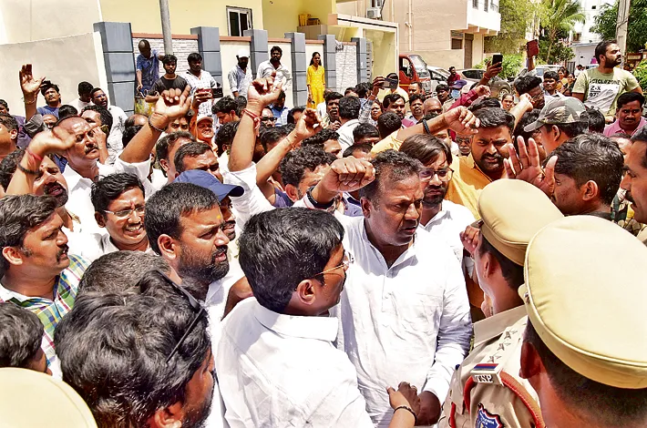 బాధితులు రింగు రోడ్డు వద్దకు చేరుకొని ఆందోళనకు దిగారు. ఈ సందర్భంగా సీఎం డౌన్ డౌన్ అంటూ ప్రభుత్వానికి వ్యతిరేకంగా నినాదాలు చేశారు. పోలీసులు భారీగా బందోబస్తు మోహరించారు. పదిమంది ప్రతినిధులను సెక్రటేరియట్కు వెళ్లాలని పోలీసులు సూచించడంతో వారితో కలిసి సచివాలయానికి వెళ్లారు.
