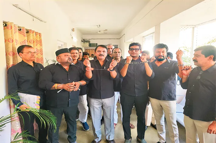 నల్ల దుస్తులు, బేడీలతో బీఆర్ఎస్ నిరసన
