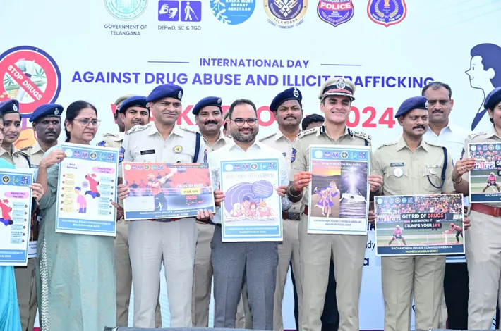 అనంతరం సీపీ తరుష్ జోషి మాట్లాడుతూ.. మత్తు బారినపడి యువత బంగారు భవిష్యత్తును నాశనం చేసుకోవద్దని తెలిపారు. డ్రగ్స్ లేదా ఇతర మాదక ద్రవ్యాలు ఎవరైనా అమ్మినా లేదా కొనుగోలు చేసినా కఠిన చర్యలు తీసుకుంటామని హెచ్చరించారు. అనంతరం మాదక ద్రవ్యాల వల్ల కలిగే దుష్పరిణామాలపై పోస్టర్లు ఆవిష్కరించారు. కార్యక్రమం లో మహేశ్వరం డీసీపీ సునీతా రెడ్డి, కందుకూర్ ఆర్డీవో సూర జ్ కుమార్, మహిళా శిశు సంక్షే మ శాఖ అధికారి పద్మజా రమణ, డీసీపీ క్రైమ్ అరవింద్బాబు, డీసీపీ ఉమెన్ సేఫ్టీ ఉషా విశ్వనాథ్, ఏసీపీ నరేందర్ గౌడ్ తదితరులు పాల్గొన్నారు.