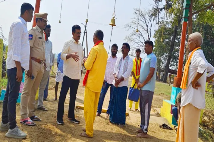మణుగూరు,(విజయక్రాంతి): భద్రాద్రి కొత్తగూడెం జిల్లా కరకగూడెం మండలంలోని చిరుమల్ల గ్రామంలో మణుగూరు సబ్ డివిజనల్ పోలీస్ అధికారి రవీందర్ రెడ్డి మంగళవారం పర్యటించారు. ఈ సందర్భంగా తిరుమల గ్రామంలో వైభవంగా నిర్వహించే సమ్మక్క సారలమ్మ జాతర(Sammakka Saralamma Jathra) ప్రాంతాన్ని సందర్శించారు. జాతరలో భక్తులకు అసౌకర్యం కలగకుండా చేపడుతున్న పనులను పరిశీలించి జాతర సమయంలో ఎటువంటి అవాంఛనీయ సంఘటనలు చోటుచేసుకోకుండా తగిన జాగ్రత్తలు తీసుకోవాలని లా అండ్ ఆర్డర్ ప్రాబ్లం రాకుండా పటిష్టమైన బందోబస్తు చర్యలు దగ్గరుండి పర్యవేక్షించాలని పోలీస్ అధికారులకు సిబ్బందికి సూచించారు. అనంతరం ఆలయ పూజారులతో జాతర వివరాలు అడిగి తెలుసుకున్నారు. సమ్మక్క-సారలమ్మ జాతర పరిసర ప్రాంతాలను పరిశీలించారు. కార్యక్రమంలో సీఐ వెంకటేశ్వర్లు, ఎస్ఐ రాజేందర్, ఈ బయ్యారం ఎస్ఐ రాజ్ కుమార్ సిబ్బంది పాల్గొన్నారు.