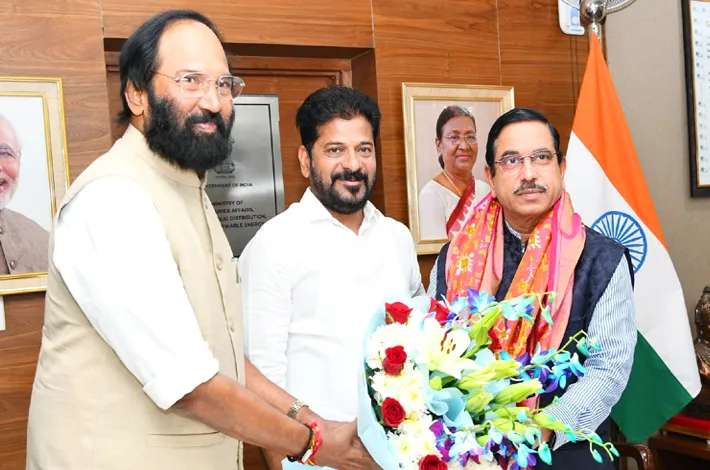 హైదరాబాద్,(విజయక్రాంతి): కేంద్ర ఆహార, పౌర సరఫరాల శాఖ మంత్రి ప్రహ్లాద్ జోషీ(Union Civil Supplies Minister Pralhad Joshi)తో ముఖ్యమంత్రి రేవంత్ రెడ్డి(CM Revanth Reddy), నీటిపారుదల శాఖ మంత్రి ఉత్తమ్ కుమార్ రెడ్డి మంగళవారం మరోసారి సమావేశమయ్యారు. ఈ సందర్భంగా మంత్రి ఉత్తమ్ కుమార్ రెడ్డి మాట్లాడుతూ... కేంద్ర పౌర సరఫరాలశాఖ నుంచి రాష్ట్రానికి బకాయిలు పెండింగ్ ఉన్నాయని పేర్కొన్నారు. కేంద్ర సివిల్ సప్లై నుంచి దాదాపు రూ.2 వేల కోట్లు రావాలని, బకాయిలు వెంటనే విడుదల చేయాలని కేంద్రమంత్రి ప్రహ్లాద్ జోషిని కోరామని వెల్లడించారు. పీఎం కుసుమ్ కింద సౌర విద్యుత్ పై సబ్సిడీ, సోలార్ యూనిట్లు, మహిళా సంఘాల కొరకు రాయితీలు కోరామని మంత్రి చెప్పారు. ట్రైబుల్, మారుమూల ప్రాంతాల్లో సోలార్ పంపుసెట్లు అడిగితే కేంద్రమంత్రి ప్రహ్లాద్ జోషి సానుకూలంగా స్పందించారని మంత్రి ఉత్తమ్ చెప్పారు. 2014-15 సంవత్సరానికి సంబంధించి సేకరించిన ధాన్యం బకాయిలు రూ. 1,468.94 కోట్లను విడుదల చేయాలని కేంద్ర మంత్రికి వినతి పత్రం అందజేశారు. ప్రధానమంత్రి గరీబ్ కల్యాణ్ యోజన కింద సరఫరా చేసిన బియ్యానికి సంబంధించిన బకాయిలు రూ. 343.27 కోట్లు విడుదల చేయాలని విజ్ఞప్తి చేశారు. సీఎంఆర్ డెలివరీ గడువును పొడిగించాలని కేంద్ర మంత్రి ప్రహ్లాద్ జోషీని సీఎం రేవంత్, మంత్రి ఉత్తమ్ కోరారు.