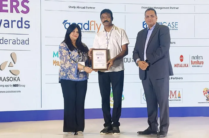 మంచిర్యాల,ఆగస్టు 25 (విజయక్రాంతి): జిల్లాలో 30 ఏండ్లకుపైగా విద్యా సేవలందిస్తున్న రివిలేషన్ పాఠశాల కరస్పాండెంటు రాపోలు విష్ణువర్ధన్ ఎడ్యుకేషన్ ఐకాన్ ఆఫ్ ద ఇయర్ 2024 అవార్డును ఓఎంఓటీఈసీ సీఈఓ డాక్టర్ శేఖర్ జైన్, యూనివర్సల్ మెంటర్స్ అసోసియేషన్ వ్యవస్థాపకుడు సందీప్ గులాటి చేతుల మీదుగా అందుకున్నారు. యూనివర్సల్ మెంటర్స్ అసోసియేషన్ ఆధ్వర్యంలో హైదరాబాద్ లోని ది పార్క్ హోటల్లో జరిగిన ప్రత్యేక కార్యక్రమానికి దేశంలోని వివిధ రాష్ట్రాల నుంచి సుమారు 200 మంది విద్యావేత్తలు పాల్గొనగా విష్ణువర్ధన్ ను ఈ అవార్డు దక్కడం అభినందనీయమని పలువురు విద్యావేత్తలు, మేధావులు, అధికారులు, పలు పాఠశాలల యాజమాన్యాలు అభిప్రాయపడ్డారు. ఈ కార్యక్రమంలో ట్రస్మా రాష్ట్ర అధ్యక్షుడు సాదుల మధుసూడన్ తదితరులు పాల్గొన్నారు.