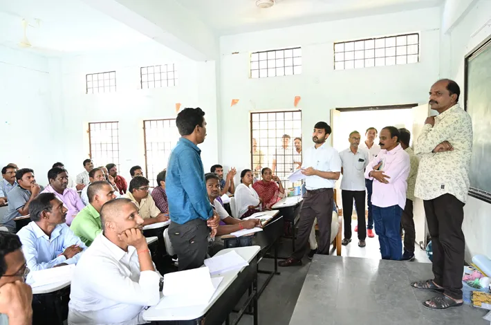 మహబూబాబాద్, మే 14 (విజయ క్రాంతి): ఉపాధ్యాయులు శిక్షణ కార్యక్రమాల్లో తెలుసుకున్న విషయాలతో విద్యార్థుల్లో నైపుణ్య అభివృద్ధి పెంపొందించడం తో పాటు, చదువులో ముందంజలో ఉండే విధంగా చేయాలని మహబూబాబాద్ జిల్లా కలెక్టర్ అద్వైత్ కుమార్ సింగ్ కోరారు. జిల్లా కేంద్రంలో ఉపాధ్యాయులకు నిర్వహిస్తున్న గుణాత్మక విద్య నైపుణ్యత శిక్షణా తరగతులు జిల్లా కలెక్టర్ అద్వైత్ కుమార్ సింగ్ పరిశీలించారు.
