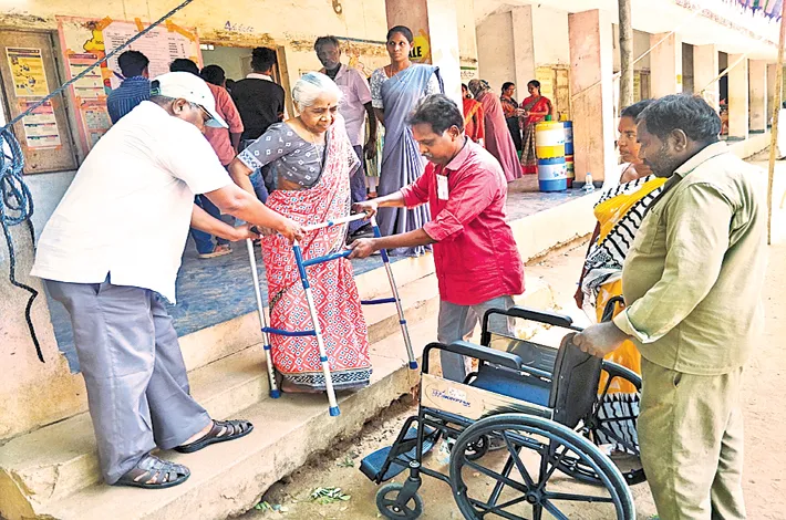 ఓటు వేసేందుకు వృద్ధుల తంటాలు