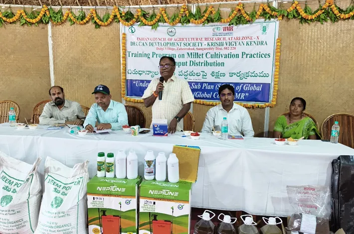 దీని ద్వారా రైతులు తక్కువ పెట్టుబడితో అధిక ఆదాయాన్ని పొందటమే కాకుండా, భవిష్యత్ లో స్వయం సమృద్ధి సాధించేందుకు కృషి చేయాలన్నారు. జహీరాబాద్ ప్రాంతంలో పప్పుధాన్యాలు (కంది, శనగ), నూనె గింజల (కుసుమలు) సాగుపై రైతులకు మెరుగైన అవగాహన కల్పించడానికి KVK, డెక్కన్ డెవలప్మెంట్ సొసైటీ (DDS) చేస్తున్న కృషిని ప్రశంసించారు. జహీరాబాద్ డివిజన్ అసిస్టెంట్ డైరెక్టర్ ఆఫ్ అగ్రికల్చర్ భిక్షపతి మాట్లాడుతూ, ఈ పంపిణీ కార్యక్రమం ప్రధాన ఉద్దేశం రైతులను మెరుగైన సాగు పద్ధతులతో పరిచయం చేయడం, నూతన సాంకేతికతల ద్వారా వ్యవసాయ వ్యవస్థను మరింత స్థిరంగా మార్చడం అని తెలిపారు.