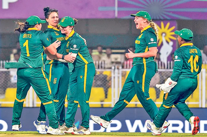 గుహావటి, అక్టోబర్ 29: మహిళల వన్డే ప్రపంచకప్లో దక్షిణాఫ్రికా ఫైనల్కు దూసుకెళ్ళింది. గత పరాజయాలకు ప్రతీకారం తీ ర్చుకుంటూ ఇంగ్లాండ్ను చిత్తుగా ఓడించింది. తొలి సెమీస్లో ఫేవరెట్గా బరిలోకి దిగిన ఇంగ్లాండ్ సఫారీల దెబ్బకు చేతులెత్తేసింది. మొదట బ్యాటింగ్కు దిగిన సౌతాఫ్రి కా 50 ఓవర్లలో 7 వికెట్లకు 319 పరుగులు చేసింది.