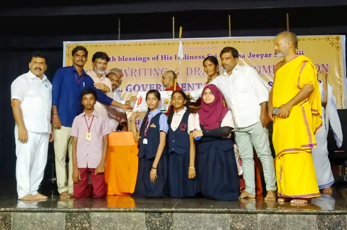 నిర్మల్,(విజయక్రాంతి): ముచ్చింతల్ లోని శ్రీశ్రీ త్రిదండి చిన్న జీయర్ స్వామి ఆశ్రమంలో ప్రజ్ఞా వికాస్ వారు వ్యాస రచన, చిత్రలేఖనం పోటీ నిర్వహించారు. ఈ పోటీల్లో నిర్మల్ జిల్లాస్థాయిలో వశిష్ట ఇంపల్స్ ఈ టెక్నో స్కూల్ విద్యార్థులు మలిహ తస్కిన్ 10వ తరగతి వ్యాసరచన, సాత్విక -9వ తరగతి -చిత్రలేఖన పోటీల్లో ప్రథమ బహుమతులు పొందారు. ఈ కార్యక్రమంలో విద్యార్థులకు ప్రశంసా పత్రం, 3000/- రూపాయలు నగదు బహుమతిని అందింజేసారు .జిల్లా స్థాయిలో ప్రథమ బహుమతులు పొందిన విద్యార్థులను పాఠశాల చైర్మన్ గొల్లపల్లి శ్రీనివాస్ గౌడ్ అభినందిస్తూ విద్యార్థులకు చదువుతో పాటు సాంస్కృతిక కార్యక్రమాలలో కావాల్సిన తోడ్పాటు అందిస్తామని హామీ ఇచ్చారు .ఈ కార్యక్రమంలో పాఠశాల ప్రిన్సిపాల్ గొల్లపల్లి మాధవి, పాఠశాల అకాడమిక్ డైరెక్టర్ డెవిడాస్ పాల్గొన్నారు .