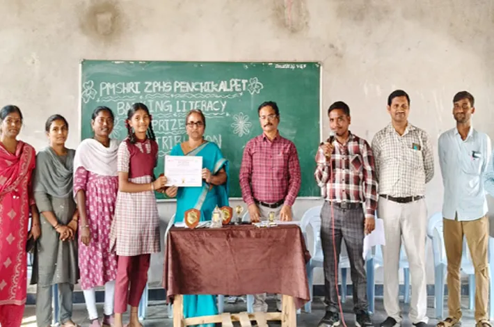 పెంచికలపేట,(విజయక్రాంతి): పెంచికలపేట మండల కేంద్రంలోని పీఎం జెడ్పీఎస్ఎస్ పెంచికలపేట పాఠశాలలో బ్యాంకింగ్ లిటరసీ కార్యక్రమంలో భాగంగా బ్యాంకులు అందించే వివిధ సేవలపై విద్యార్థులకు వ్యాసరచన పోటీలు నిర్వహించారు. పోటీల్లో ప్రతిభ కనబరిచిన విజేతలకు బహుమతులు, ప్రశంసా పత్రాలు అందజేశారు. ఈ కార్యక్రమంలోపాఠశాల ప్రధానోపాధ్యాయులు శ్రీమతి విజయనిర్మలతో పాటు ఉపాధ్యాయులు యాదగిరి ఈశ్వ పాఠశాల ప్రధానోపాధ్యాయులు శ్రీమతి విజయనిర్మలతో పాటు ఉపాధ్యాయులు యాదగిరి ఈశ్వరరావు, లక్ష్మీ, భారతి, ఉజ్వల, భాగ్యశ్రీ, ఆత్మారామ్, సమ్మయ్య, షేక్ బడే సాహెబ్, సంతోష్, విజయ్, మౌనిక పాల్గొన్నారు.