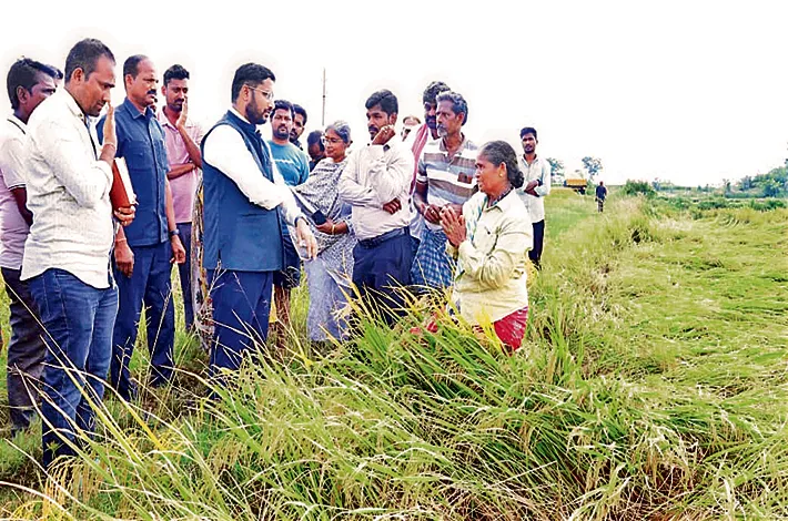 వర్షాలకు దెబ్బ తిన్న పంటలను.. రైతు భరోసా అప్ ద్వారా పంట నష్ట నమోదును పక్కాగా చేయాలన్నారు. వీలైనంత త్వరగా పంట నష్టం నమోదు పూర్తి కావలన్నారు. మళ్ళీ తుఫాన్ హెచ్చరిక నేపథ్యంలో రైతులు... కోత కి వచ్చిన దాన్యాన్ని... త్వరగా కొనుగోలు కేంద్రాలకి తరలించాలన్నారు. పూర్తిగా తడిచి రంగు మారిన ధాన్యాన్ని కొనుగోలు కేంద్రం వద్దకు కాకుండా.. నేరుగా బాయిల్ మిల్లుకు తరలించాలి అని పంచాయతీ కార్యదర్శి, రెవెన్యూ సిబ్బంది, వరి ధాన్యం కొనుగోలు కేంద్ర నిర్వాహకులను, వ్యవసాయ శాఖ అధికారులను కలెక్టర్ ఆదేశించారు.