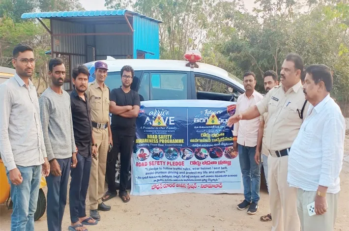 బోధన్ ఫిబ్రవరి 27 (విజయక్రాంతి): రోడ్డు భద్రత నియమాలను ప్రతి ఒక్కరు బాధ్యతగా పాటించాలని బోధన్ పోలీసులు పేర్కొన్నారు. అరైవ్ అలైవ్ కార్యక్రమంలో భాగంగా శుక్రవారం సాలూర మండల కేంద్రం శివారులోని అంతర్రాష్ట్ర చెక్ పోస్ట్ ప్రాంతంలో బోధన్ పోలీసుల ఆధ్వర్యంలో రోడ్డు భద్రత నియమ నిబంధనల అవగాహన కార్యక్రమాన్ని నిర్వహించారు.