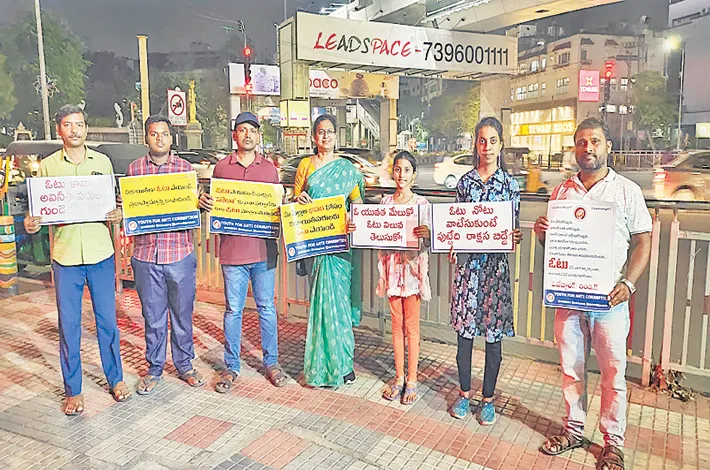 హైదరాబాద్, మే 12 (విజయక్రాంతి): ప్రతి ఒక్కరూ ఓటు హక్కును వినియోగించుకోవాలని యూత్ ఫర్ యాంటీ కరప్షన్ ఫౌండర్ పల్నాటి రాజేందర్ నేత పేర్కొన్నారు. ఆదివారం హైదరాబాద్ ఖైరతాబాద్ చౌరస్తాలో ప్లకార్డులతో ప్రజలకు అవగాహన కార్యక్రమం చేపట్టారు. ఈ సందర్భంగా ఆయన మాట్లాడుతూ.. నగరాల్లో రోజురోజుకు ఓటింగ్ శాతం తగ్గిపోతోందని, ఓటు హక్కును వినియోగించుకున్నప్పుడే ప్రశ్నించే అవకాశం ఉంటుందని చెప్పారు. పోలింగ్ రోజు ఒక పిక్నిక్ రోజుగా భావించకుండా, ప్రతి ఒక్కరూ ఓటు వేయడమే కాకుండా, చుట్టుపక్కల వారికి కూడా ఓటు వేయాలని అవగాహన కల్పించాలని కోరారు. ఈ కార్యక్రమంలో కొన్నె దేవేందర్, కొమటి రమేశ్బాబు, మారియా అంతోని, నరేశ్ తదితరులు పాల్గొన్నారు.