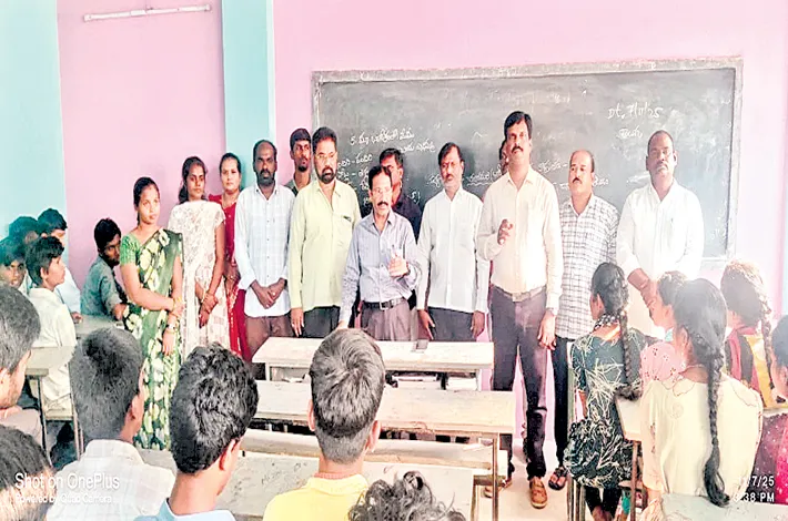 కొల్లాపూర్ రూరల్, నవంబర్ 7: రాబోయే ఇంటర్ పరీక్షలకు విద్యార్థులను సన్నద్దం చేయాలని ప్రతి పరీక్ష సెంటర్ కు తప్పనిసరిగా సిసి కెమెరాలను ఏర్పాటు చేయాల్సిందేనని జిల్లా ఇంటర్ నోడల్ అధికారి వెంకటరమణ అన్నారు. శుక్రవారం మండల కేంద్రంలోని గాయత్రి ఇంటర్ కళాశాలను ఆకస్మికంగా తనిఖీ చేశారు. ఈ సందర్భంగా ఆయన మాట్లాడుతూ విద్యార్థుల హాజరు శాతాన్ని పెంచాలన్నారు. విద్యార్థులు శ్రద్ధ, ఏకాగ్రతతో చదివి మంచి ఫలితాలు సాధించాలన్నారు. ప్రైవేటు జూనియర్ కళాశాలలో ఇంటర్ బోర్డు నిబంధనలను తూచా తప్పకుండా పాటించాలన్నారు. కళాశాల అధ్యాపక బృందం, విద్యార్థులు పాల్గొన్నారు.
