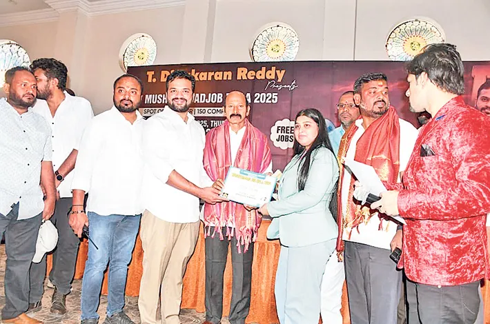 ముషీరాబాద్, డిసెంబర్ 11 (విజయక్రాం తి): ప్రముఖ సంఘ సేవకులు టి. దినకర్ రెడ్డి ఆధ్వర్యంలో ముషీరాబాద్ లోని నిరుద్యోగ అభ్యర్థులకు గురువారం ముషీరాబాద్ లోని హెరిటేజ్ ప్యాలెస్ లో నిర్వహించిన ఉచిత ఉచిత మెగా జాబ్ మేలాకు విశేష స్పందన లభించింది. ఈ మేళాలో 195 కంపెనీలు పాల్గొనగా 5200 మంది నిరుద్యోగులు ఉద్యోగాల కోసం దరఖాస్తు పెట్టుకున్నారు. వీరిలో 2010 మంది నిరుద్యోగులకు ఉద్యోగ అవకాశాలు కల్పిస్తూ నియమక పత్రాలు అందజే శారు.