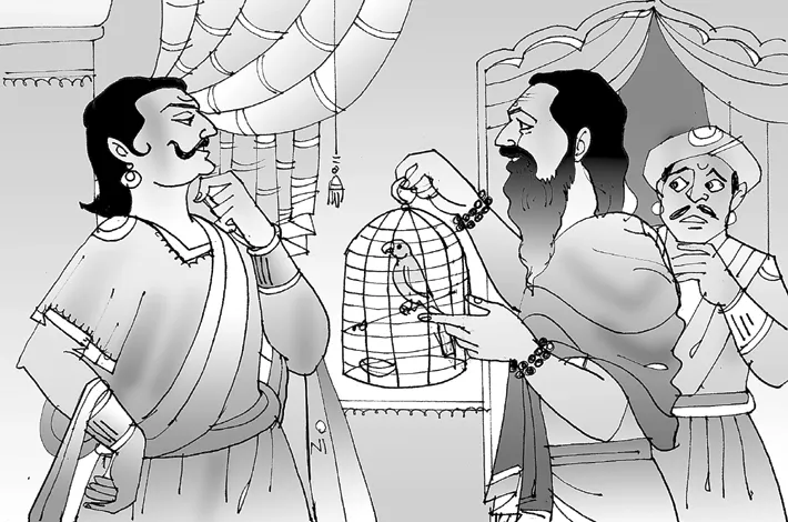 ఈ పక్షికి ఎలాంటి శక్తులూ లేవు. నీ చు ట్టూ ఉన్న వ్యక్తుల నిజ స్వరూపాన్ని నీకు ప్రత్యక్షంగా చూపి నీ కన్నులు తెరిపించడానికే ఉపాయంతో పక్షి నాటకం ఆడాను. పక్షిని చంపడంతో దుర్మార్గుల నైజం నీకు అవగతమైనది. జాగ్రత్తగా పరిశీలించు.. మొత్తంగా అవగాహన కుదురుతుంది. ప్రస్తుతానికి నన్ను బహిరంగంగా వెళ్లగొట్టి రహస్యంగా విచారణ జరిపించు. నేర్పుతో రాజాధికారుల్లో భేదాభిప్రాయాలను సృ ష్టించి.. వారి సంతోషాన్ని భంగపరచి ఒక్కొక్కరిని శిక్షించు, అంటూ బోధిస్తాడు.