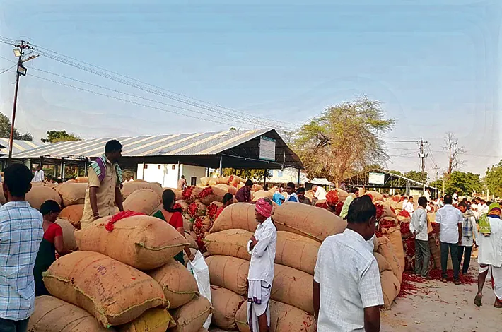 అంతర్జాతీయ మార్కెట్లో మిర్చి ధరలు పడిపోయాయనే సాకుతో పాటు సాంకేతిక అంశాలు చూపించి ధరను తొక్కేస్తున్నారు. కనీసం జెండా పాటకు కూడా కొనే దిక్కులేకపోవడంతో రైతులు కుమిలిపోతున్నారు. ఖమ్మం వ్యవసాయ మార్కెట్కు ఖమ్మం చుట్టుపక్కల ప్రాంతాలతో పాటు సూర్యాపేట, మహబూ భద్రాద్రి కొత్తగూడెం జిల్లాల నుంచి భారీగా మిర్చిని తీసుకువస్తుండటంతో మార్కెట్ అంతా మిర్చి బస్తాలతో నిండిపోతుంది.