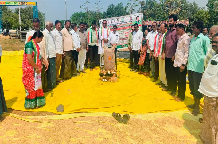రైతులకు మేలు చేసేందుకు తమ ప్రభుత్వం శక్తివంచన లేకుండా కృషి చేస్తుందన్నారు. కోదాడ పీఏసీఎస్ ఇన్చార్జి కామినేని పద్మజ మాట్లాడుతూ రైతుల కోసం బాలాజీనగర్, కొమరబండ, తొగర్రాయి, కూచిపూడిల్లో ధాన్యం కొనుగోలు కేంద్రాలు ఏర్పాటుచేసినట్లు పేర్కొన్నారు. ఆర్డీఓ సూర్యనారాయణ, , తహశీల్దార్ వాజిద్ అలీ, కౌన్సిలర్ సామినేని రజిని నరేష్, గోపి, సుల్తాని సుజాత రాంబాబు, బత్తినేని హనుమంతరావు, సీఈఓ వెంకటేశ్వర్లు, కమతం వెంకటయ్య, రైతులు పాల్గొన్నారు.