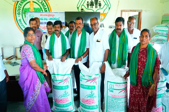 అచ్చంపేట అక్టోబర్ 14: రాష్ట్రంలోని రైతులను అన్ని విధాలుగా ఆదుకోవడమే ప్రభుత్వ ధ్యేయమని అచ్చంపేట ఎమ్మెల్యే వంశీకృష్ణ తెలిపారు. మంగళవారం అచ్చంపేట మండలం పల్కపల్లిలో నేషనల్ డెవలప్మెంట్ ప్రోగ్రాం కింద వచ్చిన సంపూర్ణ రాయితీ వేరుశనగను రైతులకు పంపిణీ చేశారు.