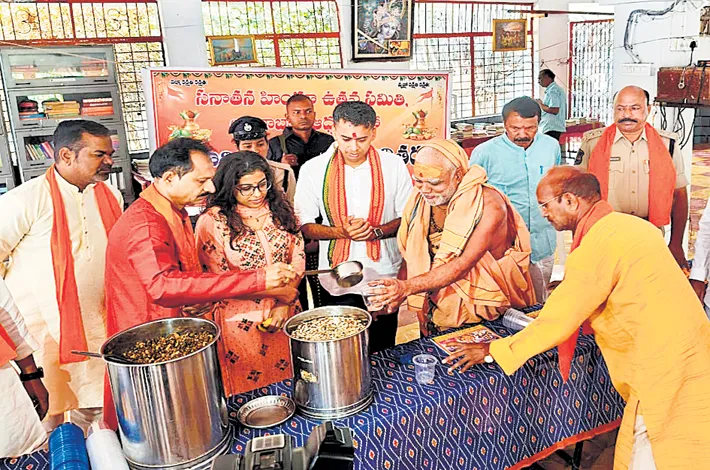 ఆదిలాబాద్, మార్చి 30 (విజయక్రాం తి): కుల మతాల భేదం లేకుండా అందరూ పండగలను కలిసిమెలిసి జరుపుకోవాలని జిల్లా ఎస్పీ అఖిల్ మహాజన్ అన్నారు. స్థాని క శ్రీ రామచంద్ర గోపాల కృష్ణ మఠంలో సనాతన హిందూ ఉత్సవ సమితి ఆధ్వర్యం లో ఏర్పాటు చేసిన ఉగాది వేడుకలకు జిల్లా ఎస్పీ సతీ సమేతంగా పాల్గొన్నారు. ఎస్పీ దపంతులకు పూర్ణ కుంభం తో స్వాగతం పలికారు. ముందుగా మఠాధిపతి శ్రీ యో గానంద సరస్వతి స్వామితో కలిసి ఆలయం లో ఎస్పీ దంపతులు ప్రత్యేక పూజలు నిర్వహించారు. అనంతరం షడ్రుచులతో కూడిన ఉగాది పచ్చడిని ప్రజలకు అందజేశారు. ఈ సందర్భంగా జిల్లా ఎస్పీ మాట్లాడుతూ జిల్లా ప్రజలకు ఉగాది శుభాకాంక్షలు తెలుపుతూ అందరూ కూడా సుఖ సంతోశాలతో, ఆయురాగోగ్యలతో ఉండాలని ఆకాంక్షించా రు.