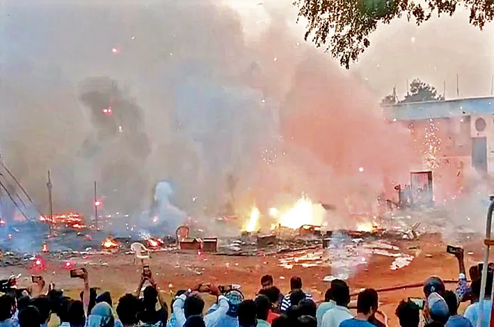 సంగారెడ్డి, అక్టోబర్ 18 (విజయక్రాంతి): సంగారెడ్డి జిల్లా ఆందోల్ శివారులో కటకం వేణుగోపాల్ అనే వ్యక్తికి చెందిన పటాకుల హోల్సేల్ గోదాం వద్ద శనివారం భారీ అగ్ని ప్రమాదం జరిగింది. పెద్ద పెద్ద శబ్దాలతో టపాసులు పేలిపోయి మంటలు చెలరేగాయి. భారీగా ఎగిసిపడిన మంటలతో అక్కడ పనిచేస్తున్న కార్మికులు, స్థానికులు భయంతో పరుగులు తీశారు. విషయం తెలుసుకొన్న జోగిపేట ఫైర్ సిబ్బంది ఘటన స్థలానికి చేరుకొని మంటలు ఆర్పి వేశారు.