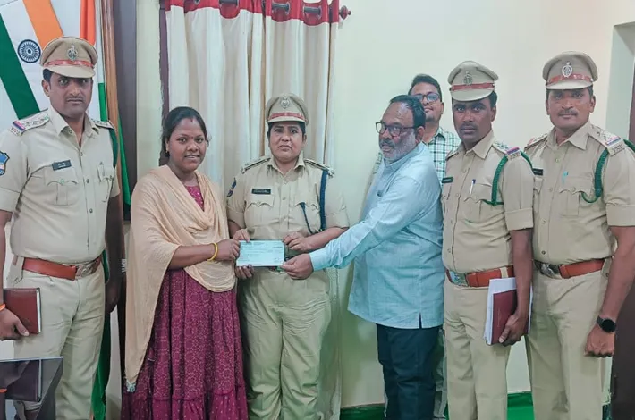 నిర్మల్ (విజయక్రాంతి): నిర్మల్ జిల్లాలో మహిళా ఎస్సైగా విధులు నిర్వహిస్తున్న డి జ్యోతి రాష్ట్ర స్థాయి వ్యాసరచన పోటీలో ప్రథమ స్థానాన్ని దక్కించుకొని పదివేల నగదు పురస్కారాన్ని శుక్రవారం అందుకున్నారు. పోలీసుల అమరవీరుల వారోత్సవాల సందర్భంగా వ్యాసరచన పోటీలు నిర్వహించగా డీ జ్యోతి రాష్ట్రస్థాయిలో ప్రతిభను చాటుకున్నారు. శుక్రవారం జిల్లా ఎస్పీ జానకి షర్మిల ఎస్సైకి 15000 నగదు చెక్కును అందించారు. ఈ కార్యక్రమంలో పోలీస్ సిబ్బంది యూసుఫ్ అలీ రాజీవ్ రమణ శ్రీనివాస్ తదితరులు ఉన్నారు.