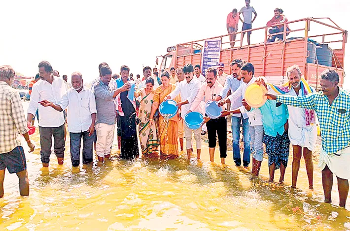 అలంపూర్, నవంబర్ 17: బీసీలు సమాజంలో ఎదిగినప్పుడే బడుగు బలహీన వర్గాలకు సామాజిక న్యాయం దక్కుతుందని అందులో భాగంగానే మత్స్యకారులు ఆర్థికంగా ఎదగాలని ఎమ్మెల్యే విజయుడు ఆకాంక్షించారు. ఈ మేరకు సోమవారం అల్లంపూర్ పరిధిలోని గుందిమల్ల, క్యాతూరు గ్రామాల సమీపంలో ఉన్న కృష్ణానదిలో చేప పిల్లల విడుదల కార్యక్రమానికి ముఖ్య అతిథిగా హాజరయ్యారు.