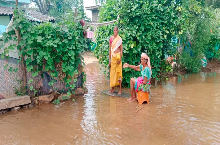 కోదాడ అక్టోబర్ 30: కోదాడ మండల పరిధిలో మంగలి తండా గ్రామంలో ఉన్న ఎన్ ఎస్ పి కాలువ ఆక్రమణకు గురికావడంతో దాని నుంచి వచ్చే వరద నీరు గ్రామంలోకి చేరడంతో గ్రామస్తులు అనేక ఇబ్బందులు పడుతున్నారు. గ్రామ శివారులో కొంతమంది ఎన్ఎస్పి కాలువను ఆక్రమించుకొని దానిపై కొంతమంది గున లు వేయడం తో ఈ పరిస్థితి దాపురించింద నీ గ్రామస్తులు వాపోతున్నారు. వరద నీరు ఓ వృద్ధురాలి ఇంట్లోకి చేరడంతో చేసేదేం లేక వరద నీటిలోనే స్టూల్ వేసుకొని కూర్చుంది.