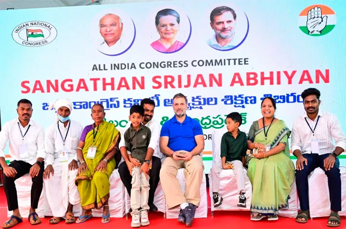 ఆదిలాబాద్/ఉట్నూర్, మార్చి 2 (విజయక్రాంతి): వికారాబాద్ జిల్లాలో జరుగుతున్న కాంగ్రెస్ పార్టీ సంఘటన్ సృజన అభియాన్ కార్యక్రమంలో భాగంగా రెండు తెలుగు రాష్ట్రా ల పార్టీ జిల్లా అధ్యక్షుల శిక్షణ ముగింపు శిబిరంలో కాంగ్రెస్ పార్టీ అగ్ర నేత, పార్లమెంట్ ప్రతిపక్ష నేత రాహుల్ గాంధీ ముఖ్య అతిథిగా పాల్గొన్నారు. ఈ సందర్భంగా జిల్లా అద్యక్షు డు డా. నరేష్ జాదవ్, నిర్మల్ జిల్లా అధ్యక్షు డు, ఎమ్మెల్యే వెడ్మ బొజ్జు పటేల్ కుటుంబ సభ్యులు రాహుల్గాంధీతో కలిసారు. రాహు ల్కు కుటుంబ సభ్యులను పరిచయం చేసి, ఫోటోలు దిగారు.