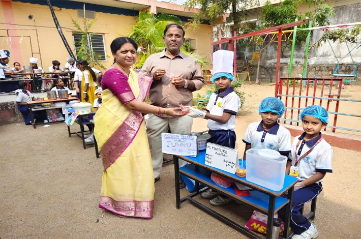 నిర్మల్,(విజయక్రాంతి): జిల్లా కేంద్రంలోని నటరాజ్ నగర్ లోని సంస్కార్ పాఠశాలలో ఫుడ్ ఫెస్టివల్ శనివారం నిర్వహించారు ఈ కార్యక్రమంలో పాఠశాల పిల్లలు వాళ్ళ ఇంట్లో తయారుచేసిన తినుబండారాలు తీసుకువచ్చి పాఠశాలలో విక్రయించడం, ఈ కార్యక్రమంలో పిల్లలు ఎంతో ఉత్సాహంగా వాళ్ళు తెచ్చిన బండారాలను కొనుక్కొని తిన్నారు. ఈ కార్యక్రమం ద్వారా పిల్లలు వ్యాపారం ఎలా జరుగునో మరియు డబ్బుల డబ్బుల విలువ గురించి తెలుసుకున్నారు.ఈ కార్యక్రమంలో కరస్పాండెంట్ అయ్యన్న గారి శ్రీధర్ ప్రిన్సిపల్ అయ్యన గారి రచన మరియు ఉపాధ్యాయులు పాల్గొన్నారు.