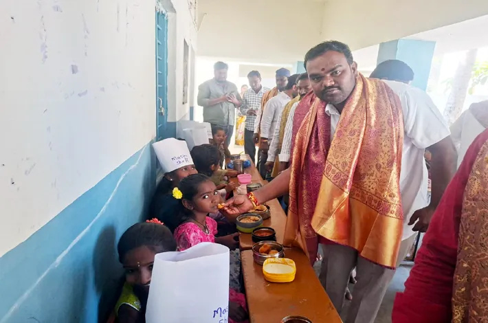 మనోహరాబాద్, జనవరి 9 : ప్రాథమిక పాఠశాలలో విద్యార్థులు, ఉపాధ్యాయులతో కలిసి ఫుడ్ ఫెస్టివల్ శుక్రవారం నాడు నిర్వించారు. మనోహరబాద్ మండలం ముప్పిరెడ్డిపల్లి ప్రాథమిక పాఠశాలలో ప్రధాన ఉపాధ్యాయులు నాగిరెడ్డి తోటి ఉపాధ్యాయులు విద్యార్థులతో కలిసి ఫుడ్ ఫెస్టివల్ నిర్వహించారు. ఈ కార్యక్రమానికి గ్రామ సర్పంచ్ కందల రాజనర్సింహ, ఉప సర్పంచ్ రామ్ రెడ్డి, పాలకవర్గ సబ్యులు సాదు సత్యనారాయణ, తదితరులు పాల్గొని విద్యార్థులు చేసిన రకరకాల ఆహారాలను తిని వారిని అభినందించారు.