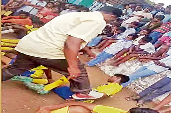 సేలం(తమిళనాడు), ఆగస్టు 12: ఫుట్బాల్ మ్యాచ్లో ఓడిపోయారనే కోపంతో విద్యార్థులను ఓ ఫిజికల్ ఎడ్యుకేషన్ టీచర్ (పీఈటీ) చితకబాదాడు. బూటుకాలితో తన్నుతూ.. చెంపలు వాయించాడు. తమిళనాడులోని సేలం జిల్లా మెట్టూరు గ్రామంలోని ఓ ప్రభుత్వ ఎయిడెడ్ పాఠశాలకు చెందిన విద్యార్థులు.. స్థానికంగా నిర్వహించిన ఓ ఫుట్బాల్ టోర్నమెంట్లో పాల్గొని ఓడిపోవడంతో ఆ స్కూల్ పీఈటీ అన్నామలై కోపంతో విద్యార్థులను చితకబాదాడు. కాలితో ఇష్టం వచ్చినట్లు తన్నాడు.