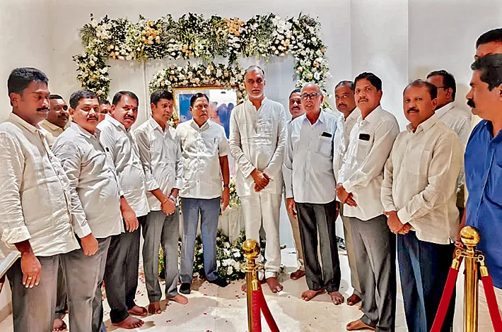 మరిపెడ, నవంబర్3 (విజయక్రాంతి): మహబూబాబాద్ జిల్లా మరిపెడ మండల టిఆర్ఎస్ పార్టీ మాజీ మంత్రి సిద్దిపేట శాసనసభ్యులు ట్రబుల్ షూటర్ తన్నీరు హరీష్ రావు తండ్రి సత్యనారాయణ రావు ఇటీవల కాలంలో పరమపదించగా ఆదివారము డోర్నకల్ మాజీ ఎమ్మెల్యే డిఎస్ రెడ్య నాయక్ డోర్నకల్ మాజీ గ్రంథాలయ సంస్థ చైర్మన్ గుడిపూడి నవీన్ రావు, మాజీ మంత్రి హరీష్ రావును హైదరాబాదులోని వారి నివాసంలో పరామర్శించి వారి తండ్రి సత్యనారాయణ చిత్రపటానికి పూలమాలవేసి నివాళులర్పించారు.