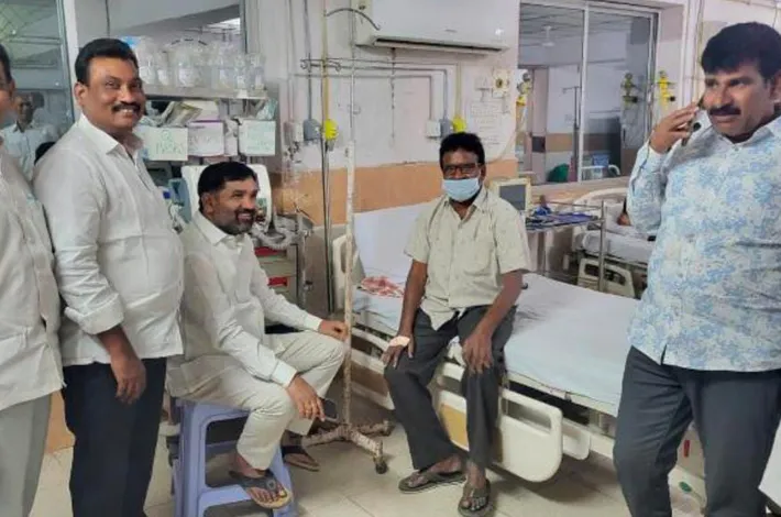 టీబీజీకేఎస్ నాయకున్ని పరామర్శించిన మాజీ ఎమ్మెల్యే