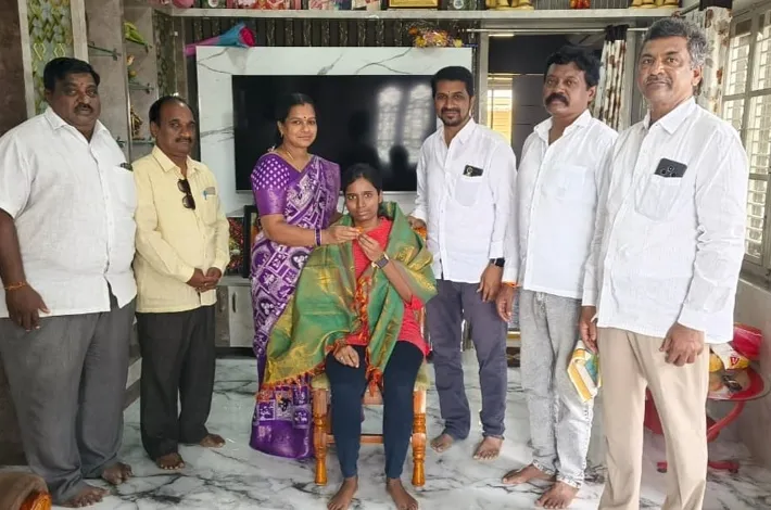 లక్ష్మీ సాహితీని సన్మానించిన ఐదో వార్డు మాజీ కౌన్సిలర్ మాదినేని సునీత ప్రసాద్..
