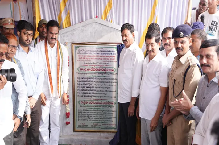 మరిపెడ,(విజయక్రాంతి): మహబూబాబాద్ జిల్లా మరిపెడ మండల కేంద్రం మున్సిపాలిటీలో సుమారు 6 కోట్ల 50 లక్షల వ్యయంతో వివిధ అభివృద్ధి పనులకు రాష్ట్ర రెవెన్యూ హౌసింగ్ సమాచార పౌర సంబంధాల శాఖ మంత్రి పొంగులేటి శ్రీనివాస్ రెడ్డి శంకుస్థాపన చేశారు. అనంతరం మాట్లాడుతూ... అభివృద్ధి, సంక్షేమం ప్రభుత్వానికి రెండు కళ్ళు అని రాష్ట్ర రెవెన్యూ గృహ నిర్మాణ సమాచార శాఖ మంత్రి పొంగిలేటి శ్రీనివాస్ రెడ్డి అన్నారు. మరిపెడ మున్సిపల్ కేంద్రంలో సిసి,బిటి రోడ్లు వర్షపు నీటి కాల్వపనులకు శంకుస్థాపన చేశారు.