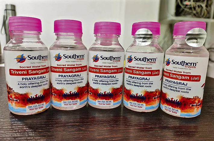 ఈ శుభసందర్భంలో దేశంలోని భక్తులకు పవిత్రమైన “త్రివేణి సంగమ జలం” ఉచితంగా అందించాలని సదరన్ ట్రావెల్స్ నిర్ణ తెలిపారు. పవిత్ర జలాలు స్వీకరించాలనుకునేవారు సదరన్ ట్రావెల్స్ వెబ్ www. బుక్ చేసుకోవాలన్నారు.