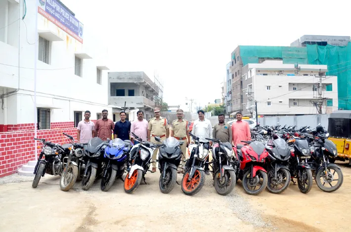 శనివారం గాయత్రీ నగర్ చౌరస్తాలో పోలీసులు వాహనాల తనిఖీలు చేపడుతుండగా.. రెండు ద్విచక్ర వాహనాలపై నలుగురు యువకులు అటుగా వచ్చారు. పోలీసులు ద్విచక్ర వాహనాలను అడ్డుకుని వాహనాలకు సంబంధించిన పత్రాలు చూపించాలన్నారు. యువకులు అనుమానాస్పదంగా ప్రవర్తించగా పోలీసులు వారిని అదుపులోకి తీసుకుని విచారించారు. విచారణలో వారు వాహన దొంగలు అని తేలింది. అనంతరం నిందితుల నుంచి సుమారు రూ.15 లక్షలు విలువ చేసే 14 ద్విచక్ర వాహనాలను స్వాధీనం చేసుకున్నారు. ముగ్గురు నిందితులను రిమాండ్కు తరలించారు. మరో మైనర్ జువైనల్కు పంపించారు.