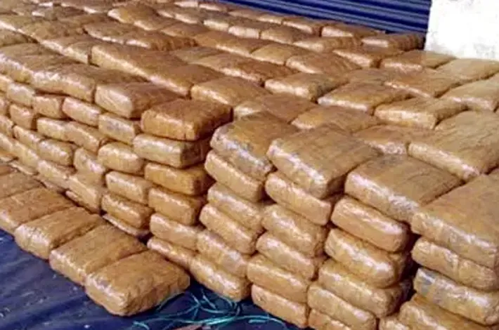 కంటైనర్ ప్రత్యేక అరలో అమర్చిన గంజాయి ప్యాకెట్లు
