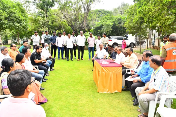 హైదరాబాద్: జీహెచ్ఎంసీ కమిషనర్ ఆర్.వి. కర్ణన్(GHMC Commissioner RV Karnan) మంగళవారం నగరంలోని అత్తాపూర్లో ఉన్న లక్ష్మీనగర్ కాలనీని సందర్శించారు. అనంతరం ఆయన సమీప కాలనీల ఆర్డబ్ల్యూఎలతో సమావేశం నిర్వహించారు. అక్కడి నివాసితులు దోమల సమస్యలు, వీధి కుక్కలు, వీధి దీపాలు సరిగా లేకపోవడం, మూసీ నది దగ్గర అక్రమ వ్యర్థాలను పారవేయడం గురించి ఆయనకు తెలియజేశారు. అత్తాపూర్ ప్రధాన రహదారి నుండి బాపుఘాట్ రోడ్డు వరకు ట్రాఫిక్ రద్దీ ఒక ప్రధాన ఆందోళనగా మారిందని, రోడ్డు విస్తరణ చేయాలని నివాసితులు కోరారు. రోడ్డు పక్కన సింగిల్ యూజ్ ప్లాస్టిక్ వాడుతున్న వ్యాపారులపై కఠిన చర్యలు తీసుకోవాలని వారు అధికారులను కోరారు.
