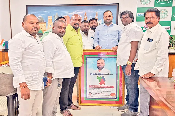 బుధ వారం జీహెచ్ఎంసీ కమిషనర్ కార్యాలయంలోకమిషనర్ కర్ణన్ను గ్రేటర్ హైదరాబాద్ మున్సిపల్ ఎంప్లాయీస్ యూనియన్ ప్రతినిధుల బృందం కలిసి ఆయన్ని సత్కరిం చారు. అలాగే మల్కాజిగిరి, సైబరాబాద్, జీహెచ్ఎంసీ కార్పొరేషన్లతో కూడిన మ్యాప్ ల ఫొటో ప్రతిమను కమిషనర్కు బహూకరించారు. ఈ సందర్భంగా అధ్యక్షులు ఉదారి గోపాల్ మాట్లాడుతూ నూతనంగా మూడు కార్పొరేషన్లు