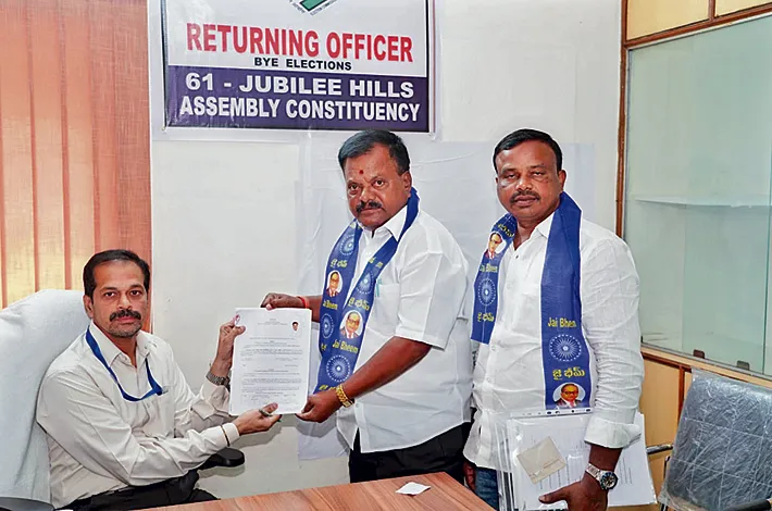 జూబ్లీ హిల్స్ ఉప ఎన్నికల్లో పోటీ చేసేందుకు గాను తెలంగాణ రాష్ట్ర మాల సం ఘాల జేఏసీ చైర్మన్ మందాల భాస్కర్ గౌరవ చైర్మన్ చెరుకు రామచందర్ వర్కింగ్ చైర్మన్ మంత్రి నరసిం హయ్య, రాష్ట్ర మాల యూత్ జేఏసీ అధ్యక్షుడు డాక్టర్ పి. వి. స్వామి, తెలంగాణ రాష్ట్ర మాల విద్యార్థి జేఏసీ అధ్యక్షుడు మాదాసు రాహుల్ రావులతో కలిసి షేక్పేట తహసిల్దార్ కార్యాలయంలో ఎన్నికల రిటర్నింగ్ అధికారికి నామినేషన్ పత్రాన్ని దాఖలు చేసినట్లు ఆది వారం ఆయన ఒక ప్రకటనలో తెలిపారు.