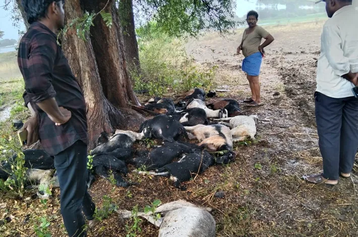 ఇశ్రతబాద్ లో పిడుగు పాటుకు 21 మేకలు మృతి..