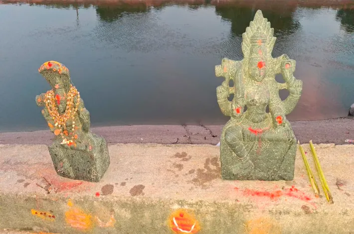 గరిడేపల్లి, నవంబర్ 5 : మండల పరిధిలోని మర్రికుంట గ్రామ సమీపంలో గల సాగర్ ఎడమ కాలువ వద్ద ఇటీవల రెండు దేవత మూర్తులు నీటిలో లభ్యం కావడంతో స్థానిక గ్రామస్తుల్లో ఆసక్తి చెలరేగింది. కాలువలో ప్రవహిస్తున్న నీటితో కొట్టుకు వచ్చినట్లు భావిస్తున్న ఈ విగ్రహాలు అమ్మవారికి చెందినవిగా కనిపిస్తున్నాయి.విగ్రహాలు కనిపించడంతో సమీపంలోని అయ్యప్ప స్వాములు, భక్తులు కలిసి వాటిని జాగ్రత్తగా బయటకు తీసి ప్రత్యేక పూజలు నిర్వహించారు.భక్తులు వచ్చి దర్శనం చేసుకుంటున్నారు.